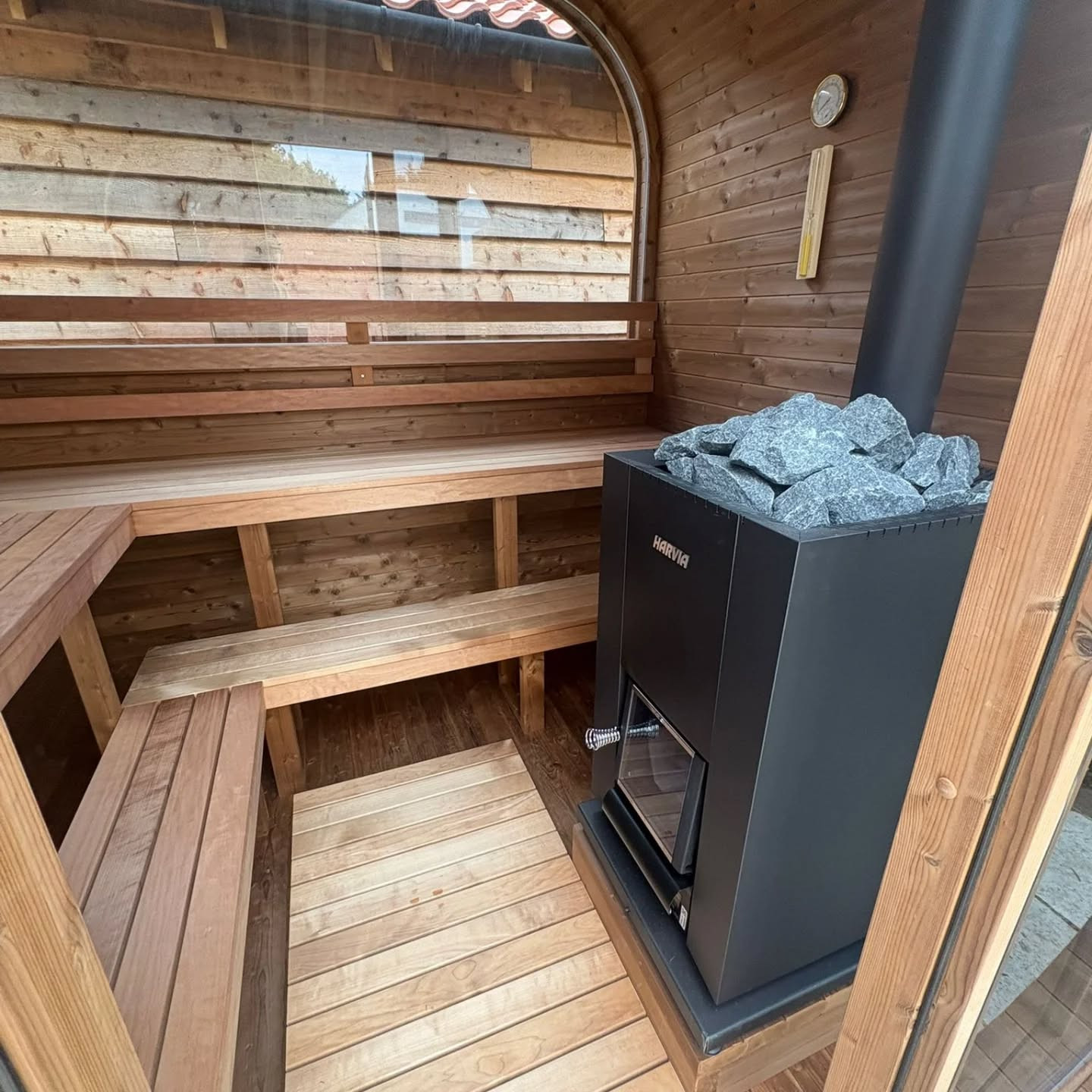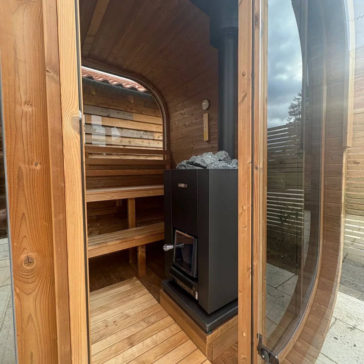 Magnificent Cube 210 with a Harvia wood-burning stove.