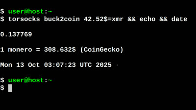 [1] NO EXTRA FEES: No 8%-20%+ fee. You will pay 42.52$ worth of $XMR for 42.52$ worth of USD (example: 0.137769 $XMR - Mon 13 Oct 03:07:23 UTC 2025 - Monero = 308.632$)