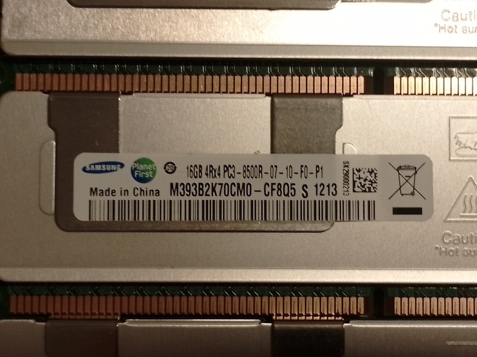 64 GB = 4x 16 GB DDR3 8500R PC3 1066 Mhz 4Rx4 ECC REG Registered Ram.