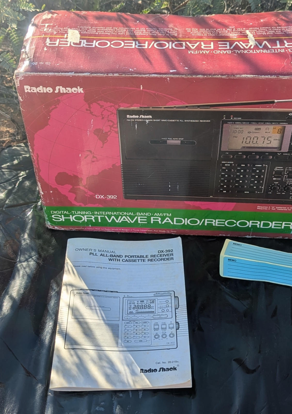 Clean and fully functional Radio Shack DX-392 shortwave receiver with built-in cassette recorder. Two units available; one boxed with manual. Good AM/FM/SW performance. $60 each $110 for both OBO.