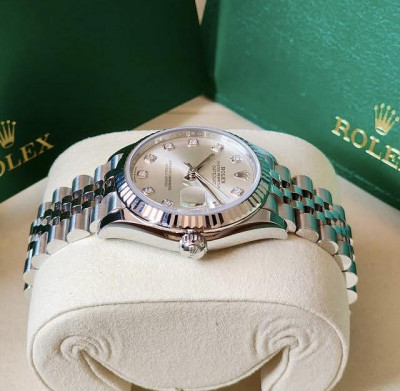 Jubilee Bracelet, White Gold Fluted Bezel, Silver Dial With Factory Diamonds