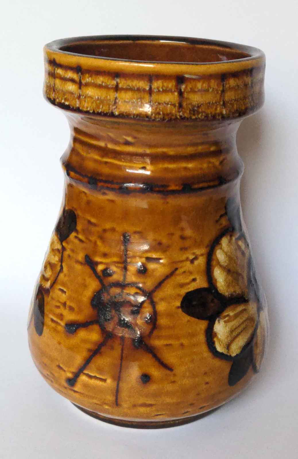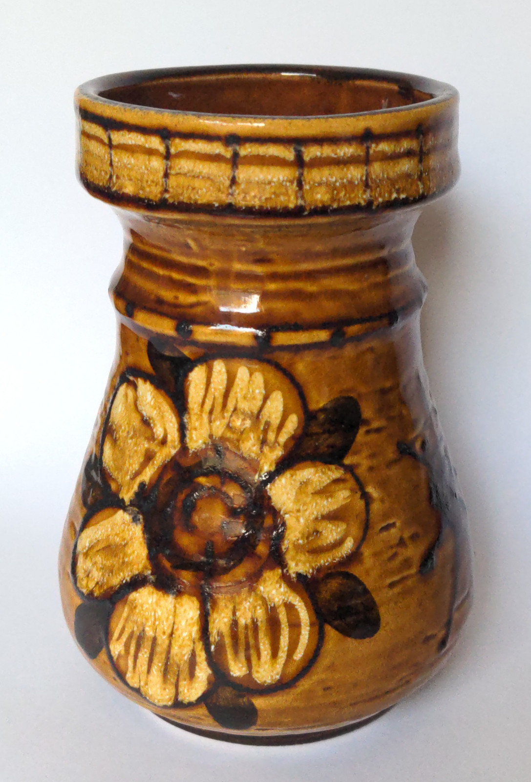 Brown flower-themed ceramic vase | Very good condition