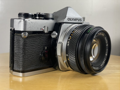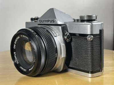 Olympus OM-1 Silver Film Camera F. Zuiko Auto-S 50mm f/1.8 Lens made in JAPAN
