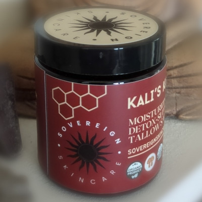 Awaken your divine energy with Kali's Karma signature liposomal infusion. Handcrafted with organic grass-fed beef tallow, raw wildflower honey, soothing aloe vera, nourishing coconut oil, and transdermal magnesium chloride, this sacred elixir is enhanced with antioxidant-rich chaga mushroom, potent soursop, deeply penetrating castor oil, nutrient-dense spirulina, liver-supportive milk thistle, calming lavender, and invigorating rosemary.