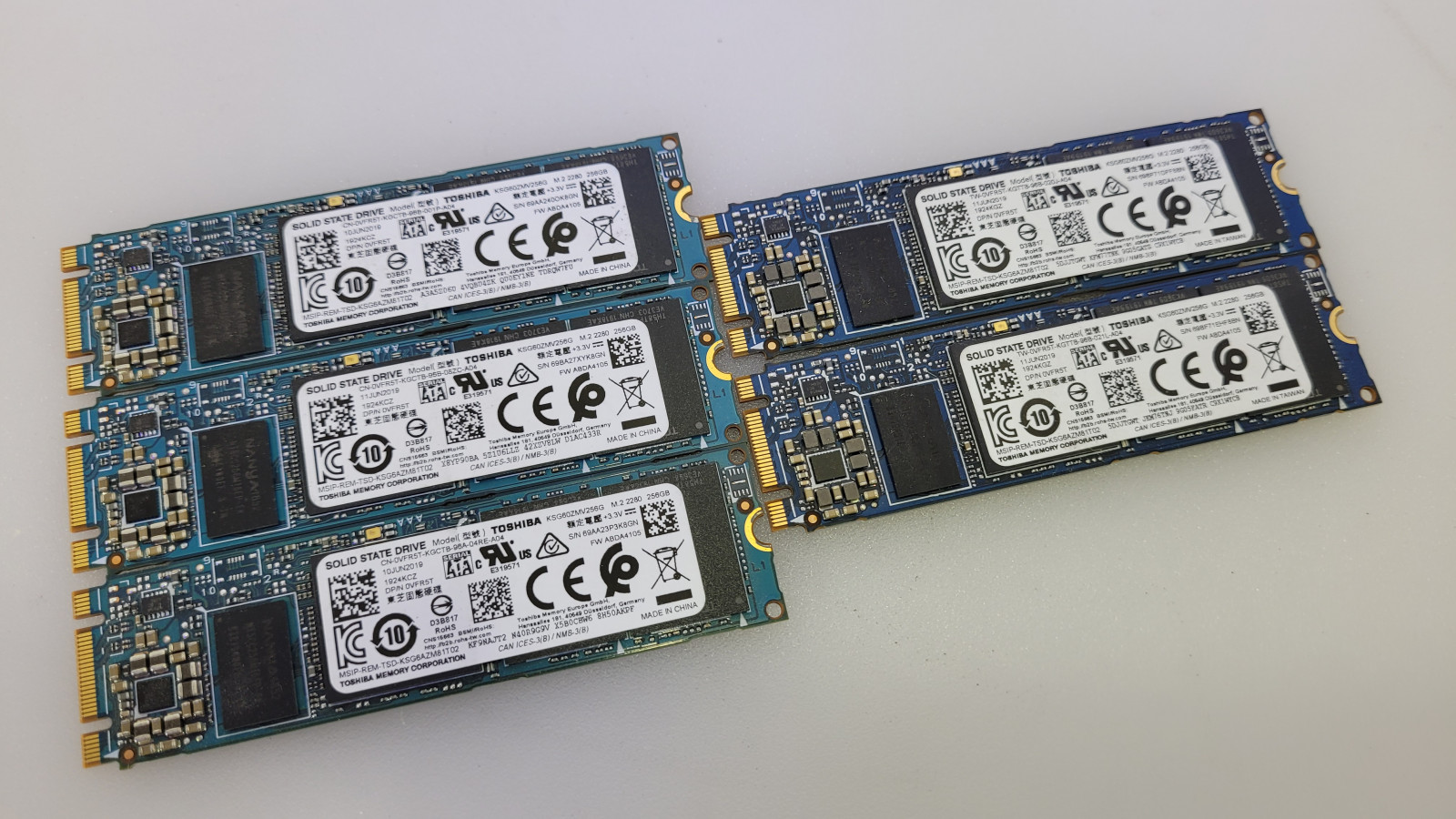 Lot of 5 Toshiba 256GB M.2 SSD Drives Model KSG60ZMV256G