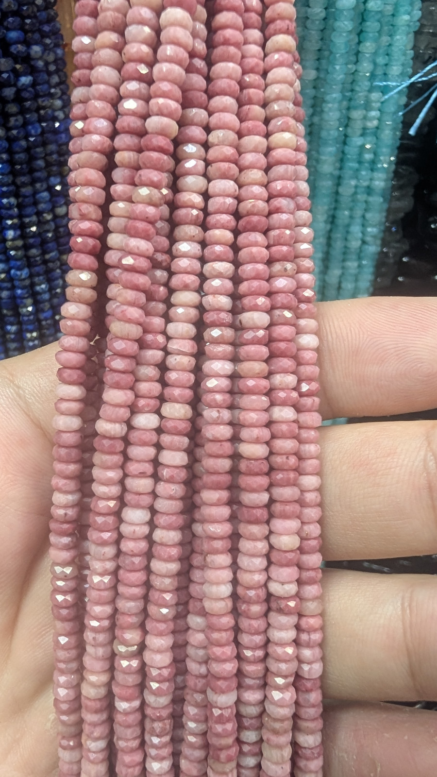 Tags: 4mm, Wholesale, Faceted, Rhodonite, Heishi, Rondelle, Disc, Long, Strand