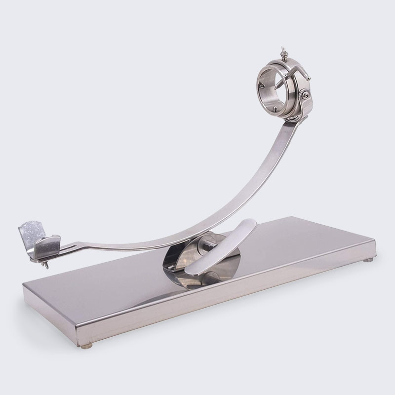 Elegant stainless steel jamón stand with a modern design, highly durable and resistant.