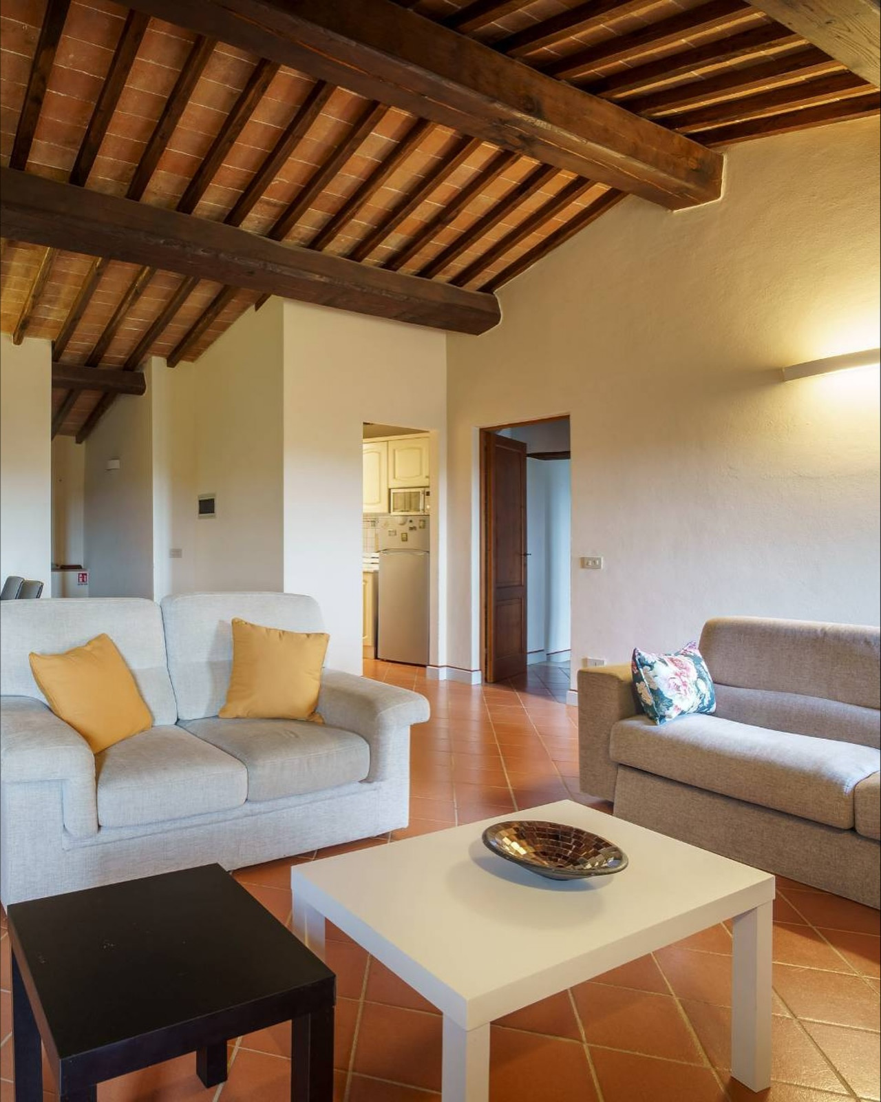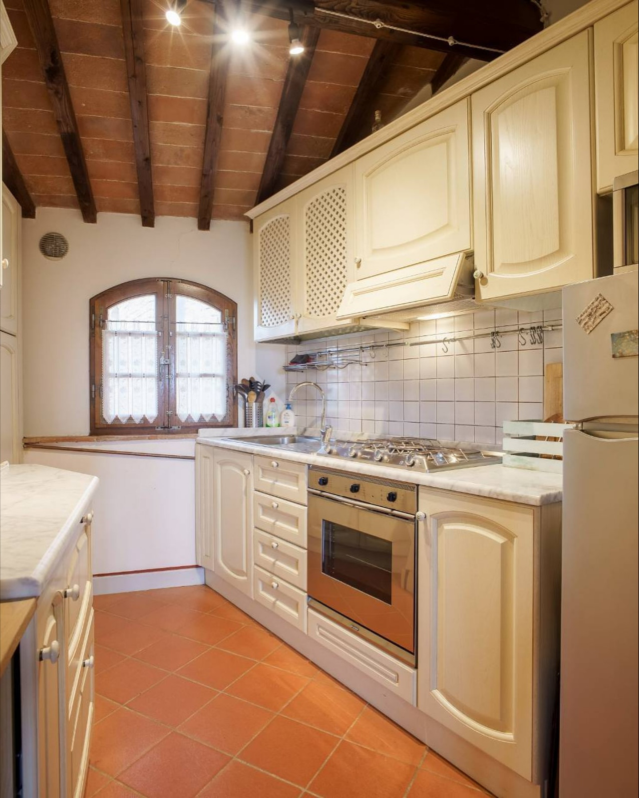 Experience authentic Tuscan living in this 110 sqm apartment, complete with classic chestnut beams and terracotta floors.