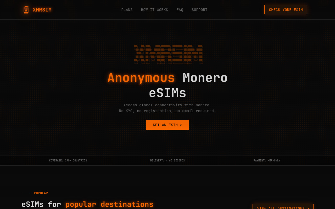 XMRSIM.COM - Anonymous Monero eSIM Plans