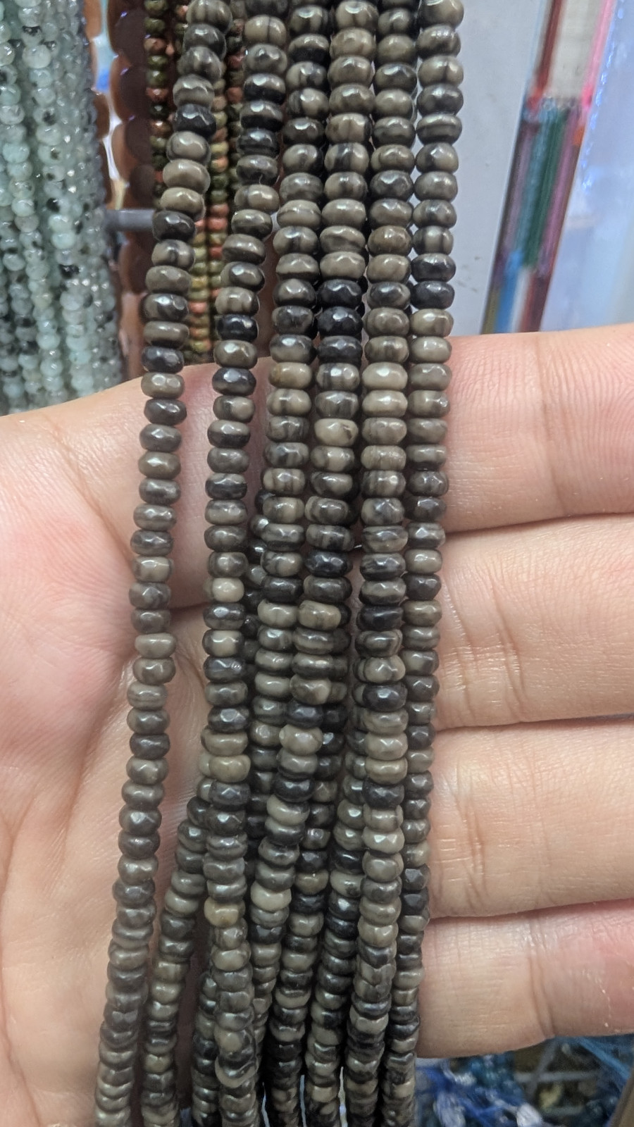Tags: 4mm, Wholesale, Faceted, Gray, Jasper, Disc, Long, Strand