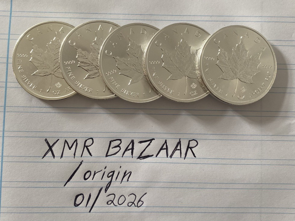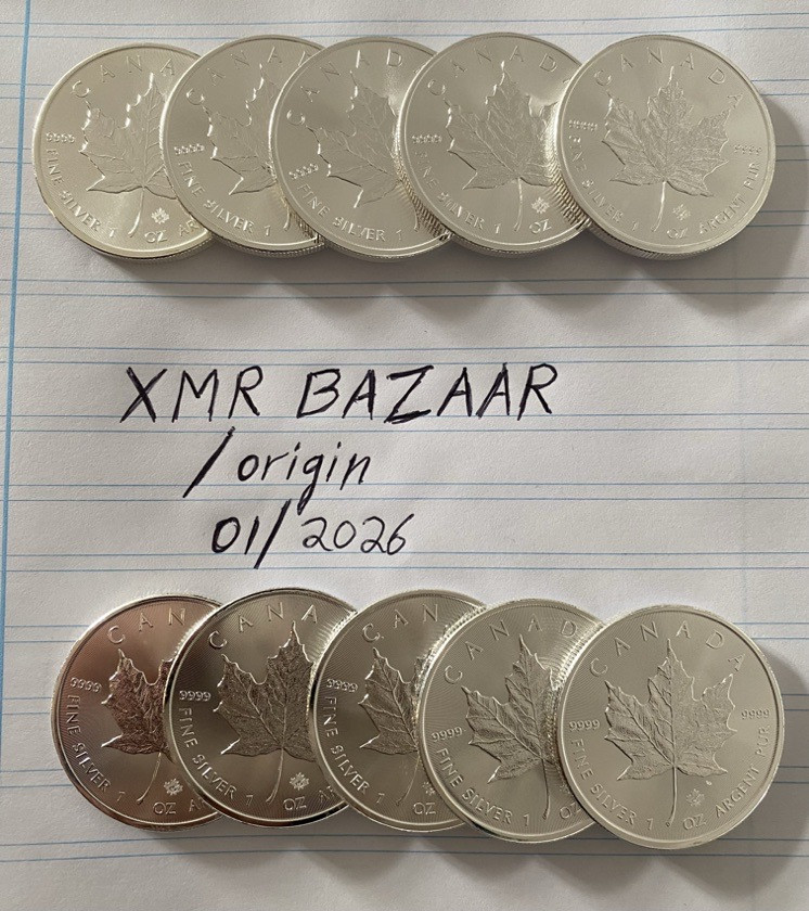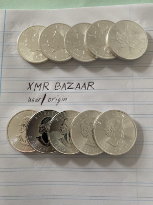 I’m selling 10 one-ounce Silver Maple Leaf coins.