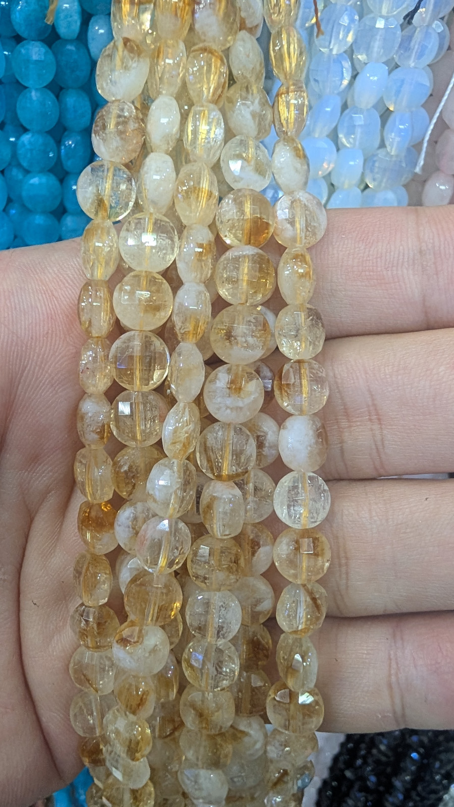 Tags: Wholesale, 8mm, Faceted, Citrine, Gemstone, Coin, Long, Strand