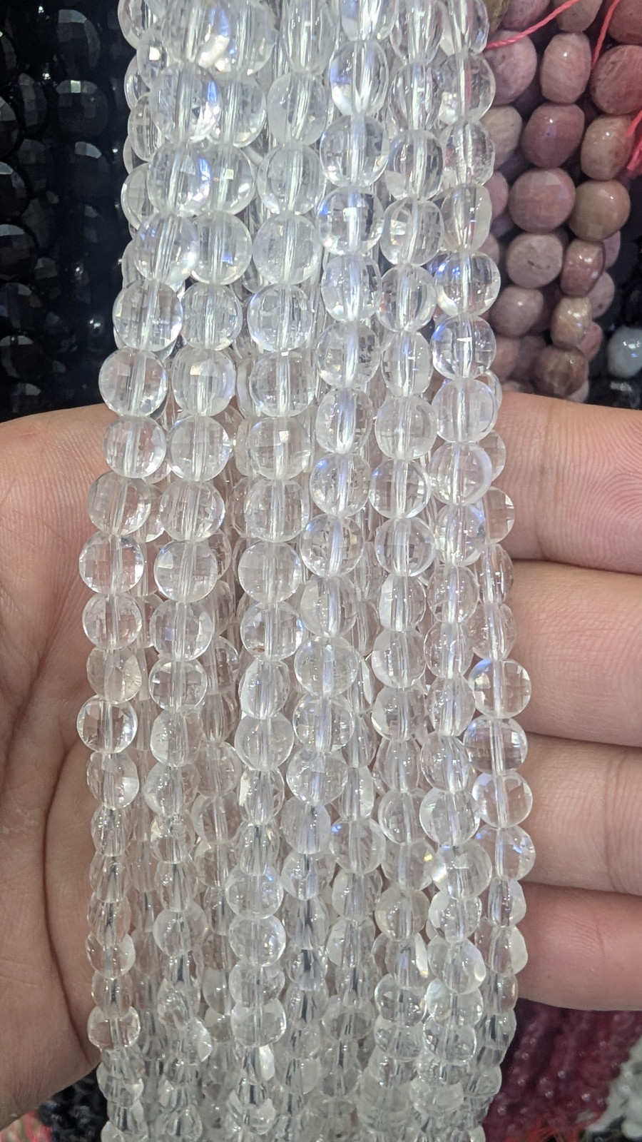 Tags: Wholesale, 6mm, Faceted, Clear, Quartz, Gemstone, Coin, Long, Strand