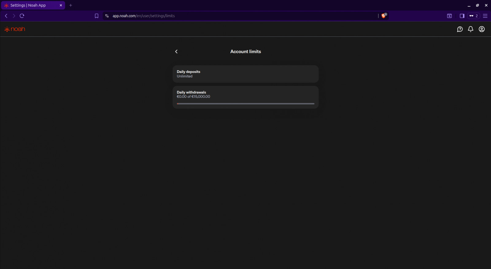 Noah have unlimited deposits via bank or wire and convert funds directly to crypto!