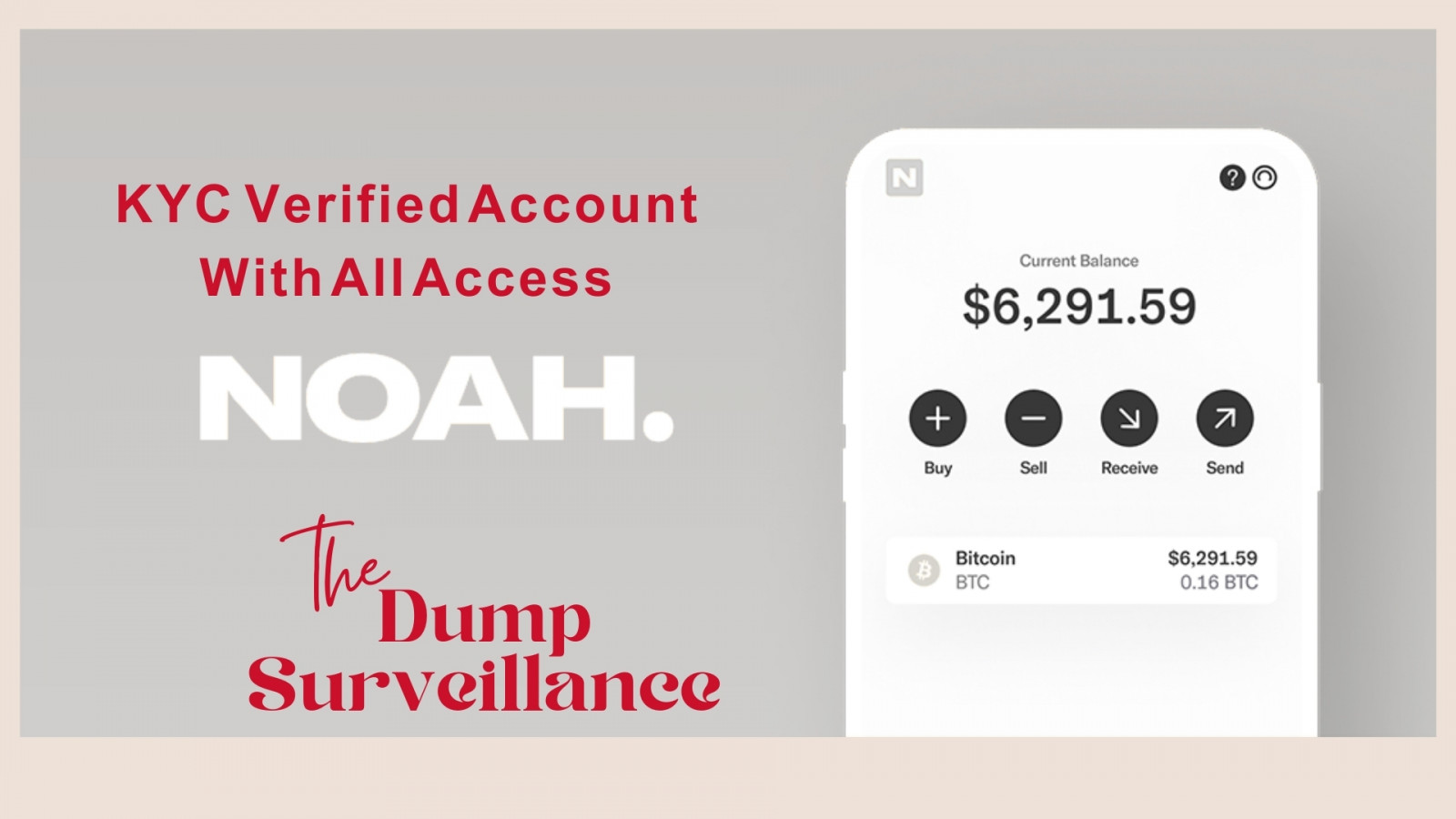 Tags: noah, noah.com, noah kyc, kyc account, wise kyc, account, crypto account, crypto buy sell, xmr, dumpSurveillance, kyc on demand, privacy, non-kyc, burner
