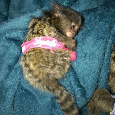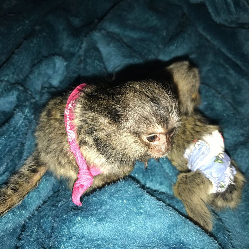 Often called the finger monkey, these tiny monkeys grow the size of a barbie doll and weigh less than a pound as adults. Don't let their adorable size and facial expressions fool you, they are very curious and highly intelligent. Because they are new world primates, they are the most easy animals to raise, they require the most dedication and time, most of the time. These monkeys do not have any special requirements, not like other animals, including normal lighting, diet, normal veterinary care, neutering, and more. They are highly specialized and are easy to care for. If you are seriously interested in obtaining a marmoset monkey please message me.