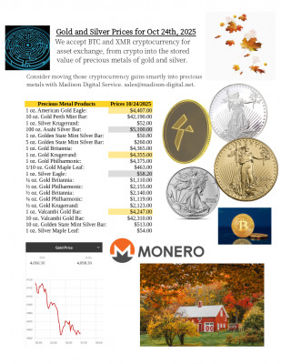 Looking to convert some of your XMR to precious metals, then, we have thew service for you. Madison Digital Service's Asset Exchange. We work with our partner, Coast2Coast Metals to provide the exchange of assets and have precious metals delivered to your doorstep via FEDEX or UPS securely.