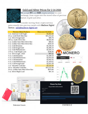 Looking to convert some of your XMR to precious metals, then, we have thew service for you. Madison Digital Service's Asset Exchange. We work with our partner, Coast2Coast Metals to provide the exchange of assets and have precious metals delivered to your doorstep via FEDEX or UPS securely.