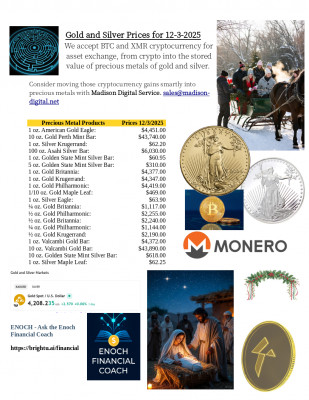 Looking to convert some of your XMR to precious metals, then, we have thew service for you. Madison Digital Service's Asset Exchange. We work with our partner, Coast2Coast Metals to provide the exchange of assets and have precious metals delivered to your doorstep via FEDEX or UPS securely.