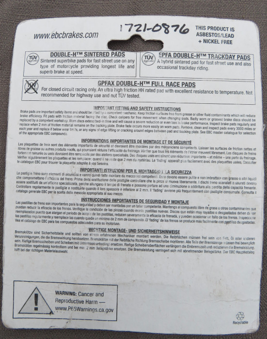 se incluyen 4 pastillas por el precio, para ambos caliper delanteros