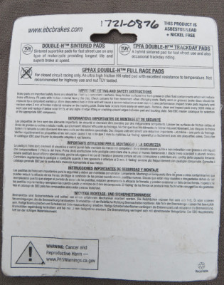 pastillas de frenos delanteros EBC EPFA447HH - Motorcycle brake pads