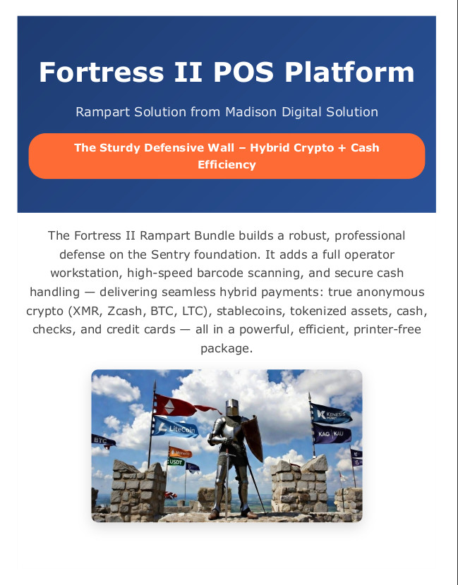 crypto (XMR, Zcash, BTC, LTC), stablecoins, tokenized assets, cash, checks, and credit cards — all in a powerful, efficient, printer-free package.