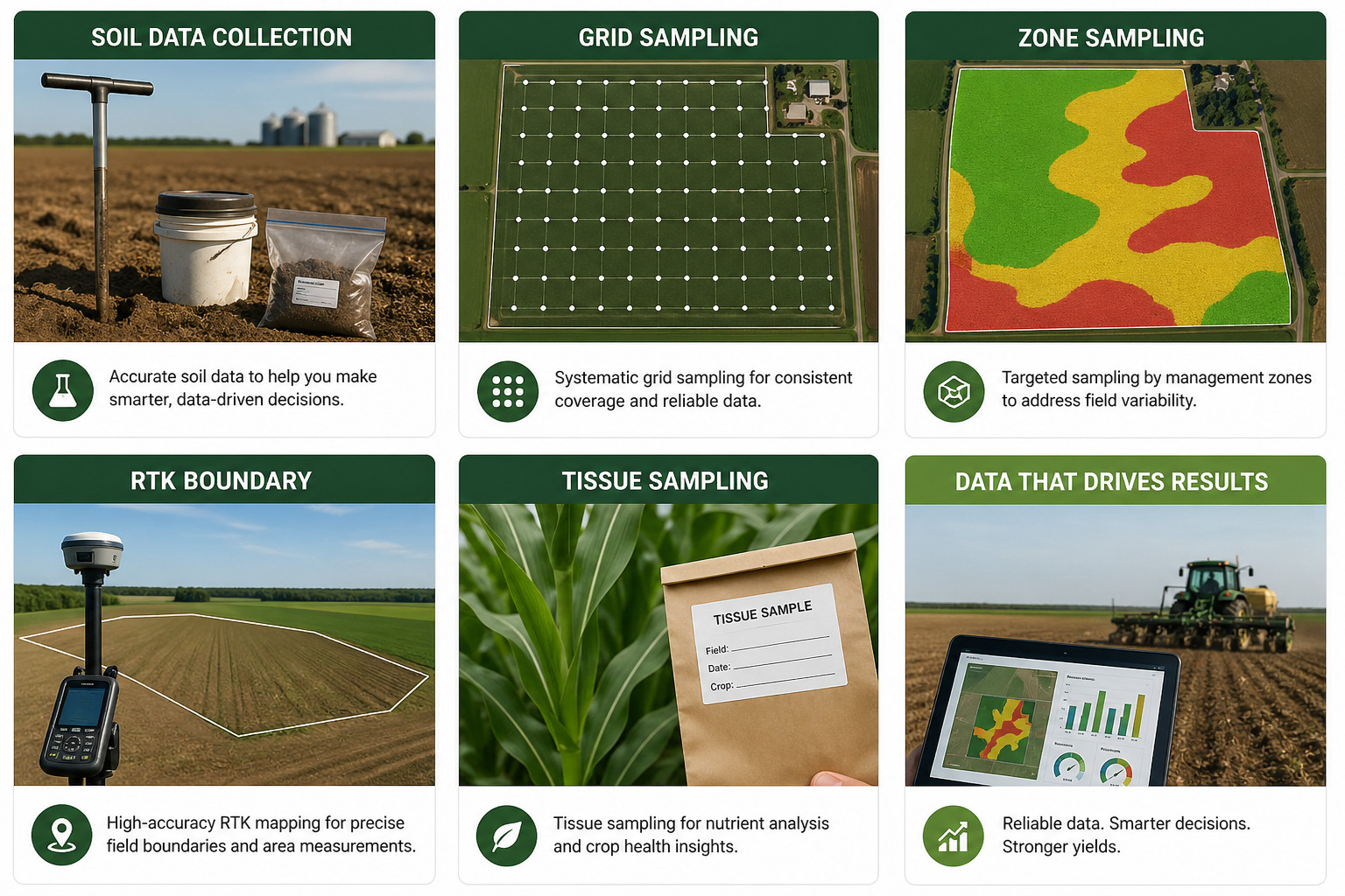 Tags: soil sampling, RTK, tissue sampling, field mapping, gird sampling, zone sampling, soil collection