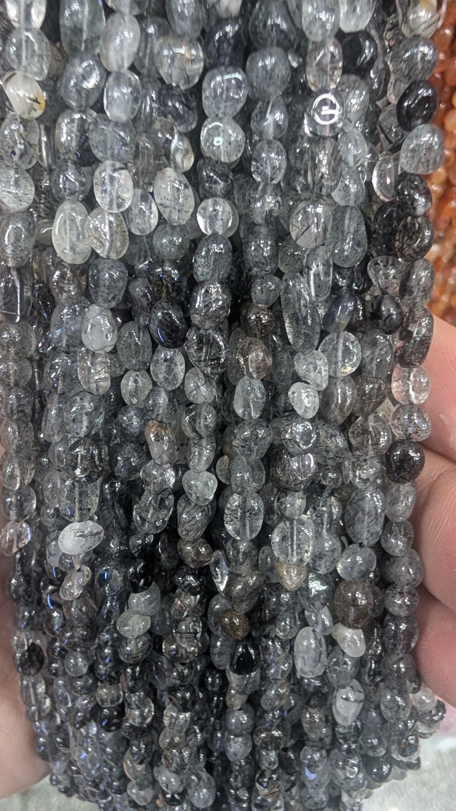 Tags: Black, Rutilated, Quartz, Wholesale, Small, Chip, Gemstone, Long, Strand