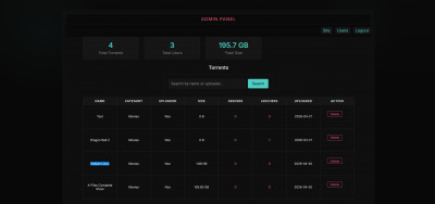 On the admin side, a dedicated admin panel gives you full control without ever touching the database manually. The user manager lets you ban, warn, promote, or demote accounts with a few clicks. The torrent manager handles approvals, rejections, edits, and deletions. A built-in moderation system tracks reported content and user activity logs so nothing slips through unnoticed. Site-wide settings, announcements, and configuration are all manageable from the dashboard.