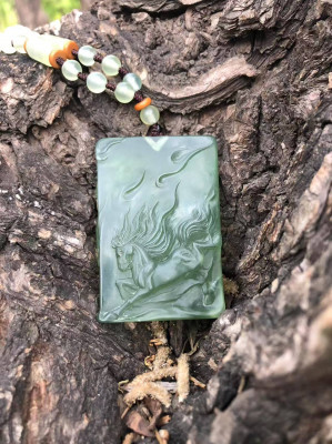 Jade necklace, carved with a galloping horse, exquisitely handcrafted, and set with a jade bead chain. Pendant dimensions: 6x4x1cm