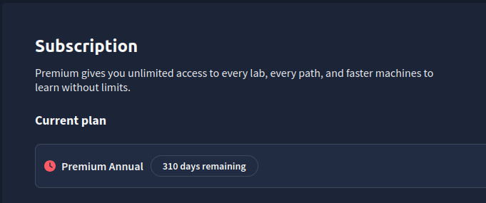 (Out of stock) TryHackMe PREMIUM account with 300+ days remaining (instant delivery)