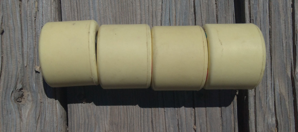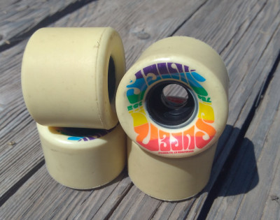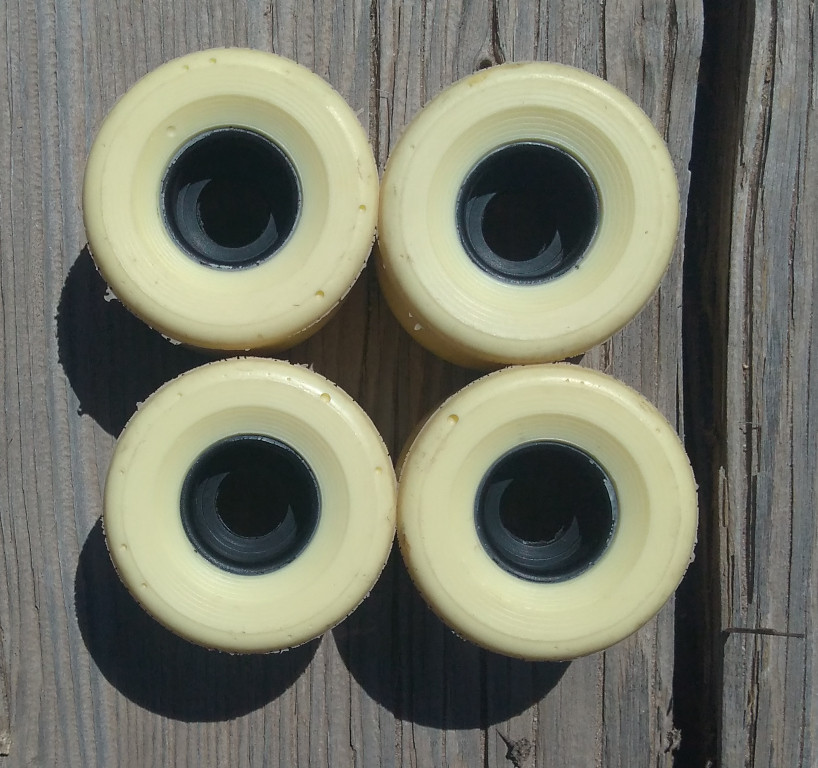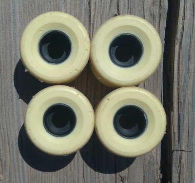 These are used, but just barely so. The riding surface still has the skin on it, and there are still lines from the mold on the edges. Basically brand new, just ridden around a few times on a mini cruiser before I realized they're a bit too small for my taste. They're great wheels if you're looking for mini cruiser wheels under 60mm. 78a.