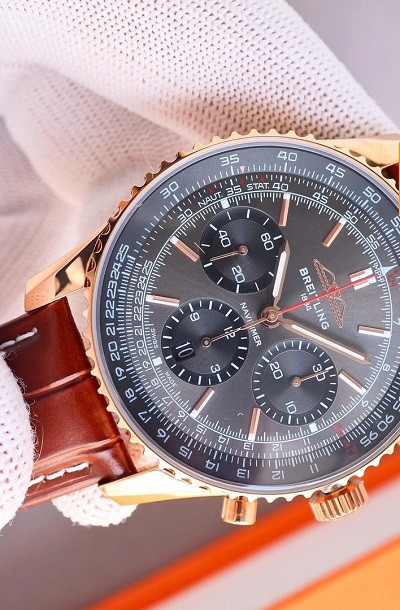 A striking replica of the iconic Breitling Navitimer B01 Chronograph 46, reference RB0137241L1P1. This watch features a bold 46mm case, chronograph functions, and detailed sub-dials. Available in a variety of colors including: