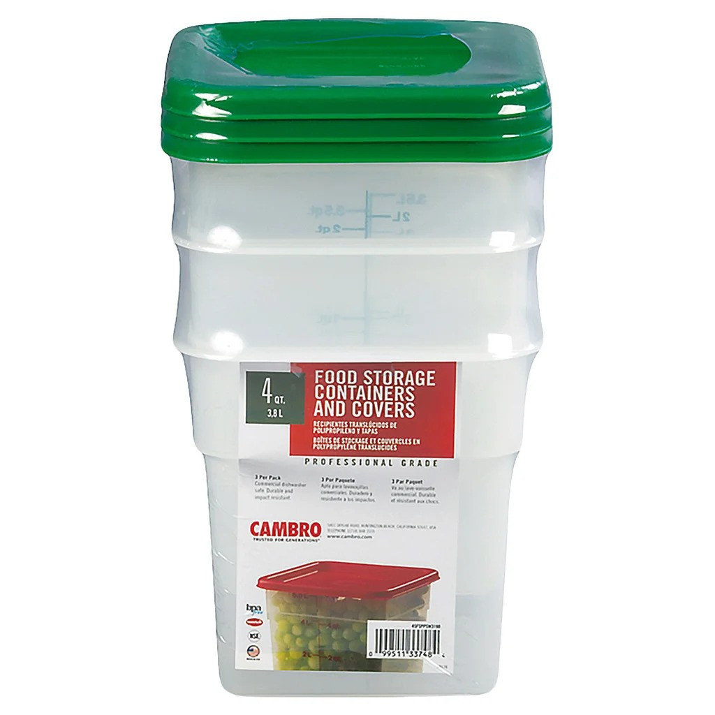 Cambro Square 4-Quart Food Storage Container with Lid, 3-count