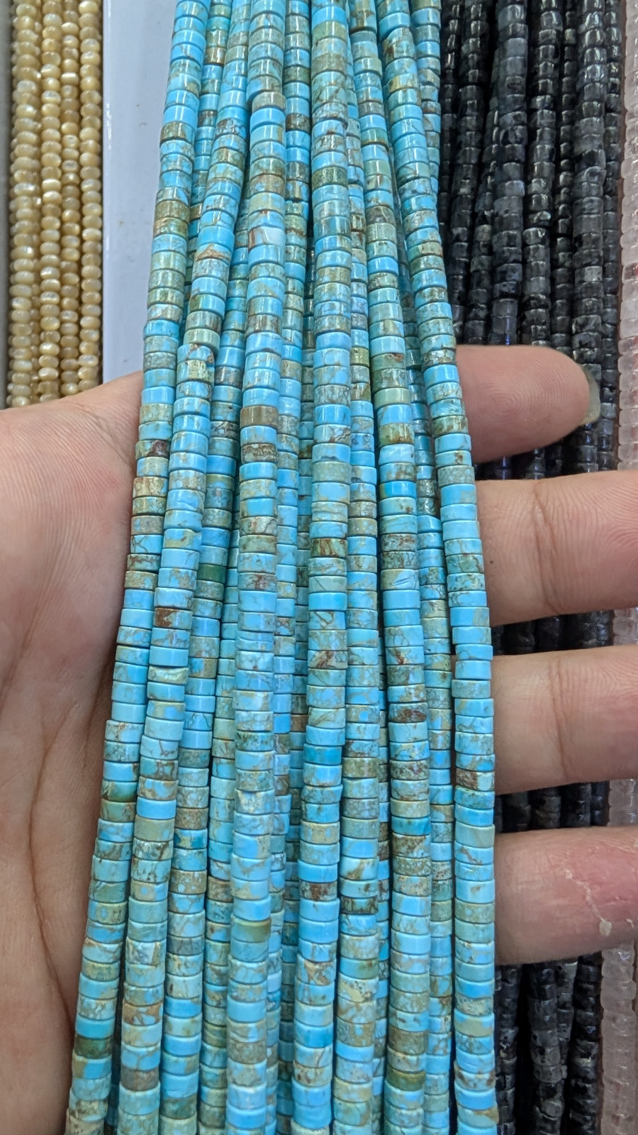 Tags: turquoise, 4mm, heishi, rondelle, gemstone, jewelry, bracelet, necklace, handmade