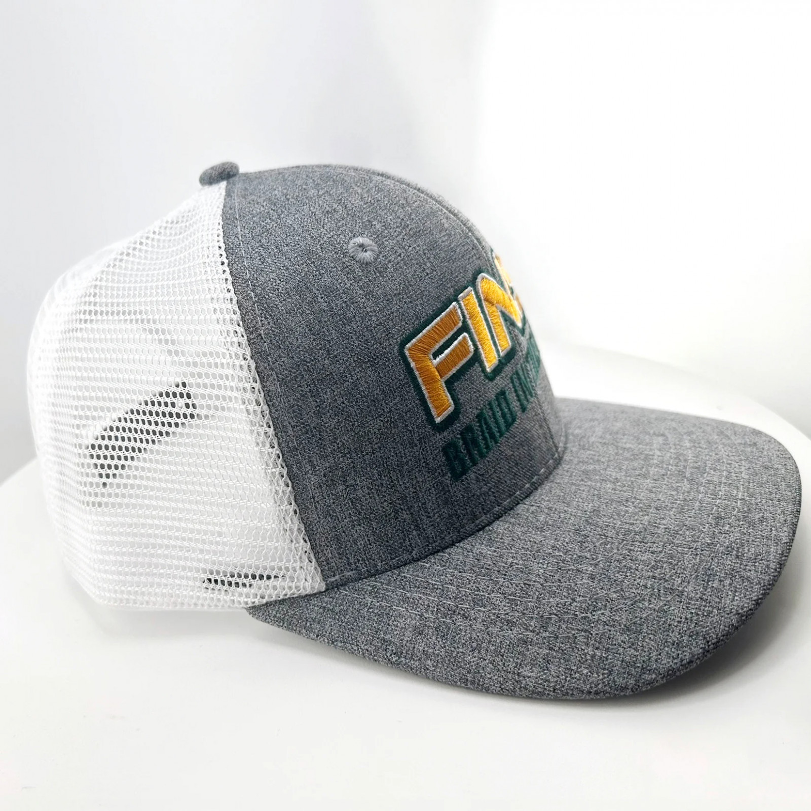 Show off your style and FINS loyalty and American pride with this sleek and comfortable grey and white snap-back FINS Braid in the USA Hat. Represent FINS Braid with this gray and white snap back hat with FINS logo and American flag.
