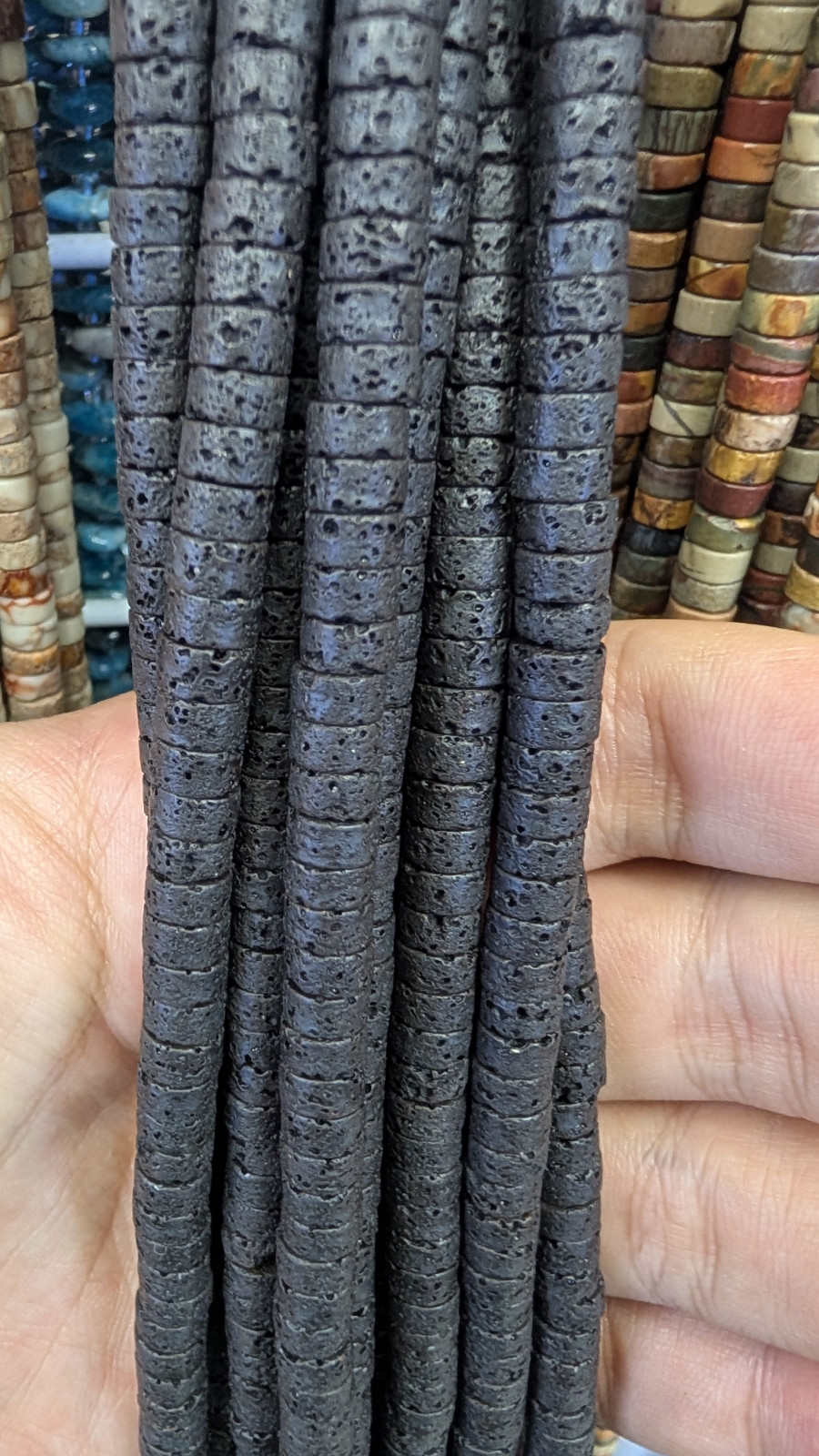 Tags: Lava, 8mm, Wholesale, Heishi, Rondelle, Long, Strand
