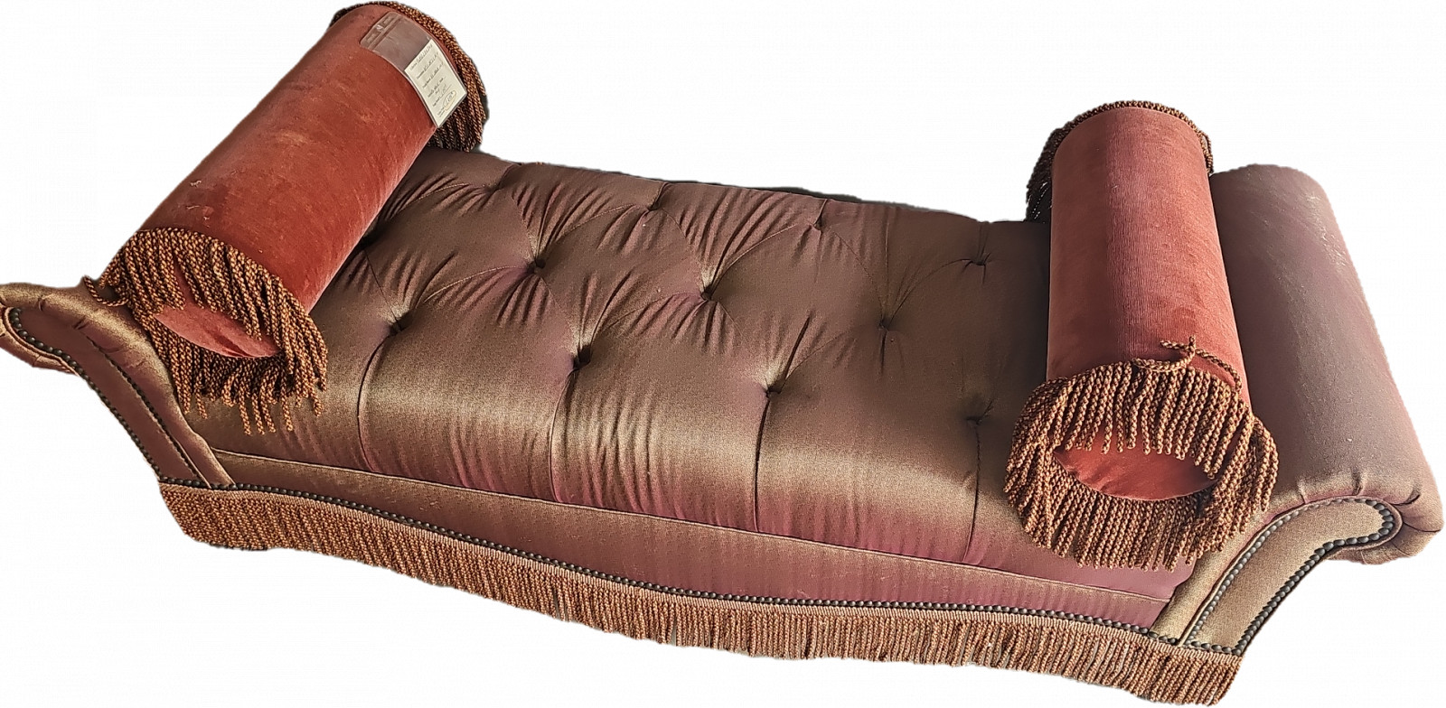 Tufted two arm bench, maroon and gold. Please contact me with any questions. Thank you for looking.