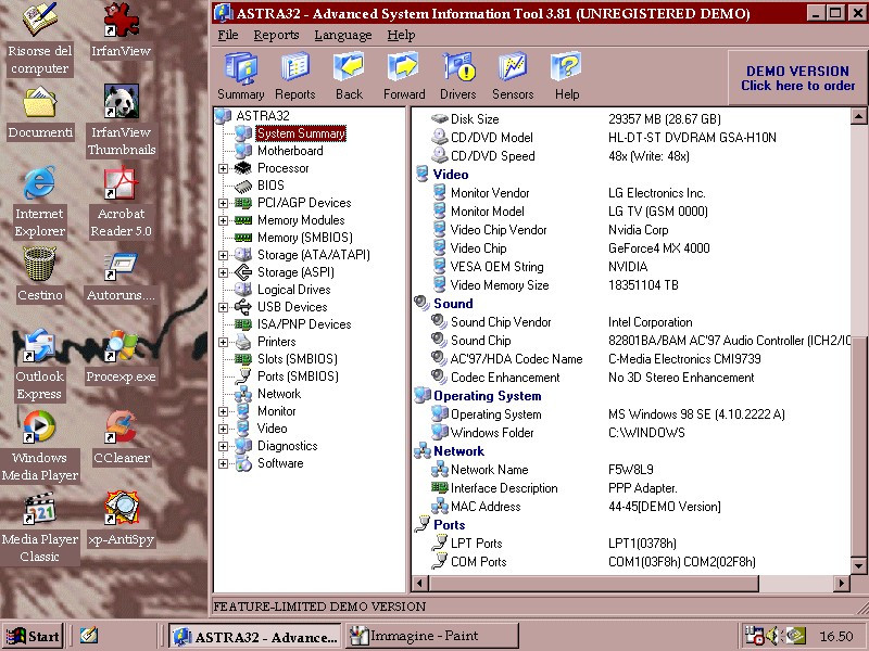 Windows 98 Se pc desktop parallela seriale x2 rs232 nvidia Intel usb floppy