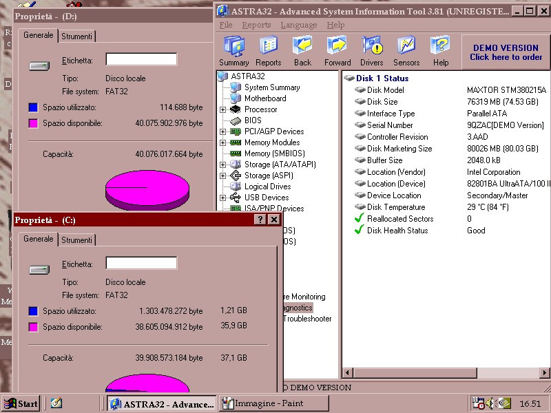 -HD Maxtor 80 GB testato, nessun errore nei test né S.m.a.r.t.,