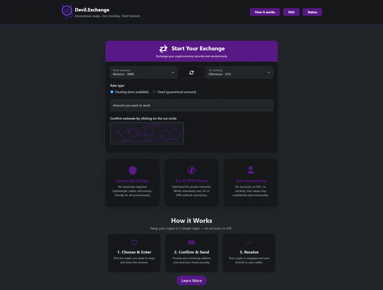Devil.Exchange – Anonymous Crypto Swap | No KYC | No Account | Tor Network