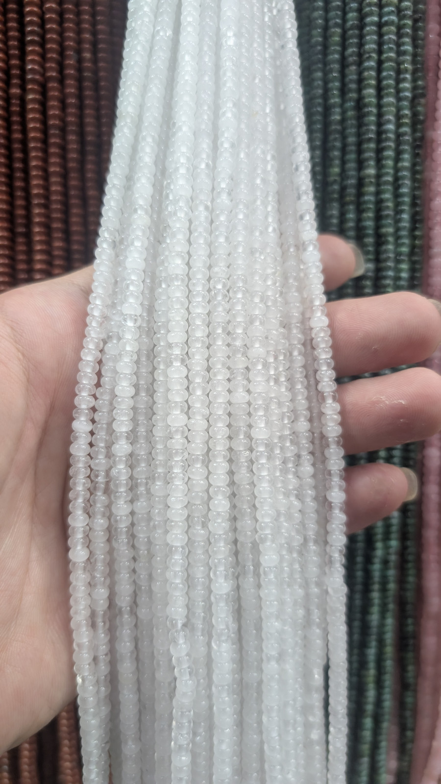 4mm Wholesale Round White Jade Heishi Rondelle Disc Long Strand