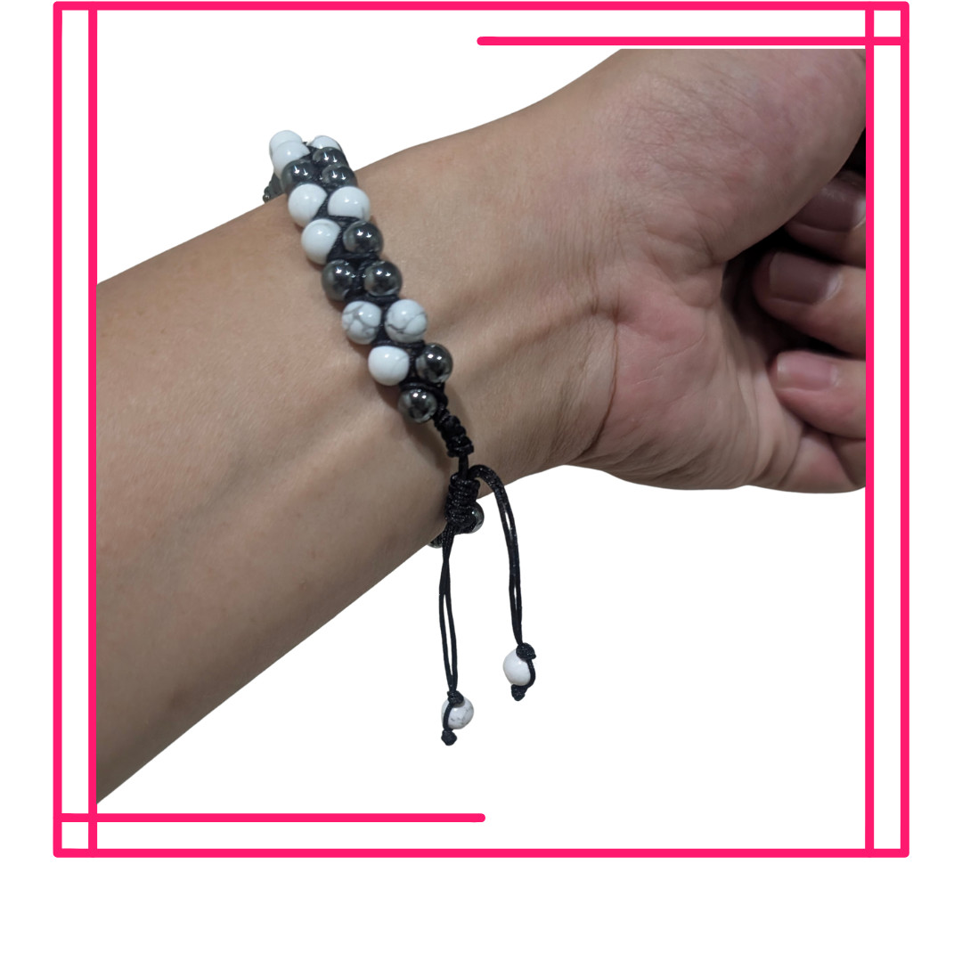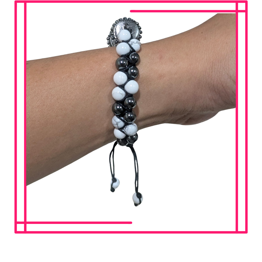 Lakshmi Bracelet, White Howlite and Hematite, 8mm