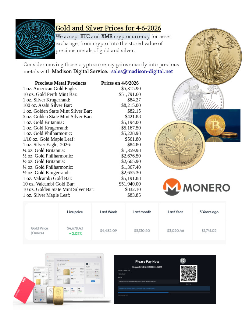 We are showing just one of twenty different options, American Eagle, 1 OZ Gold Coin. We update the price daily to reflect dynamic spot price every 24 hrs. We will honor the price presented until we change the price at the start of each day(Monday - Friday).