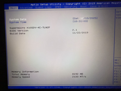 Supermicro X10SDV-4C-TLN2F motherboard with 8GB ram