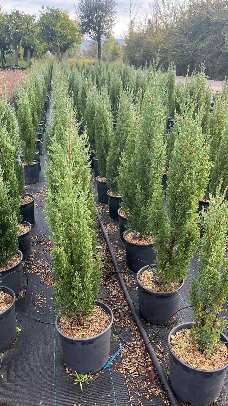 Tuscan Cypress, Garda variety, approximately 1 meter / 1.10 meters tall. Healthy and vigorous plant, perfect for creating elegant hedges or as a standalone specimen in the garden. The Garda Cypress is ideal for vertical and slender growth, maintaining the narrow, columnar shape typical of the Tuscan landscape. Easy to grow, hardy, and highly ornamental. Potted plant, ready for transplanting.