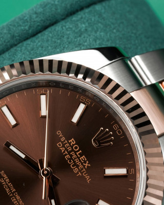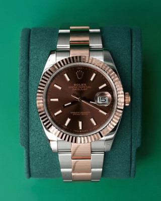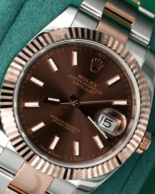41mm Rolex Datejust with Chocolate Stick Dial in 18kt Everose Gold and Stainless on Oyster (Ref: 126331)(Year: 2018)(Box & Papers)(SKU: 6963942)