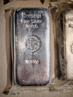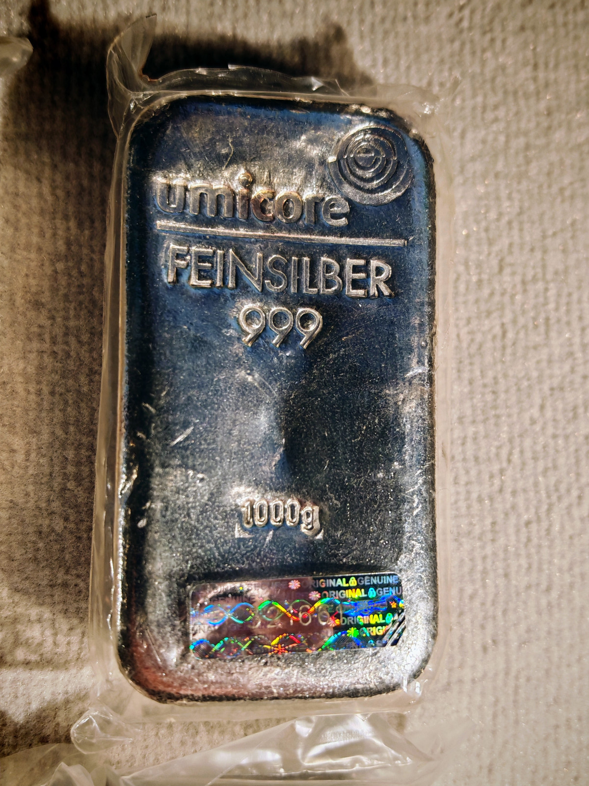 Tags: Silver, 1kg, 1000g, Heraeus, Umicore, Degussa, Bullion, .999, Bar, XMR, Precious Metals, Investment, Physical