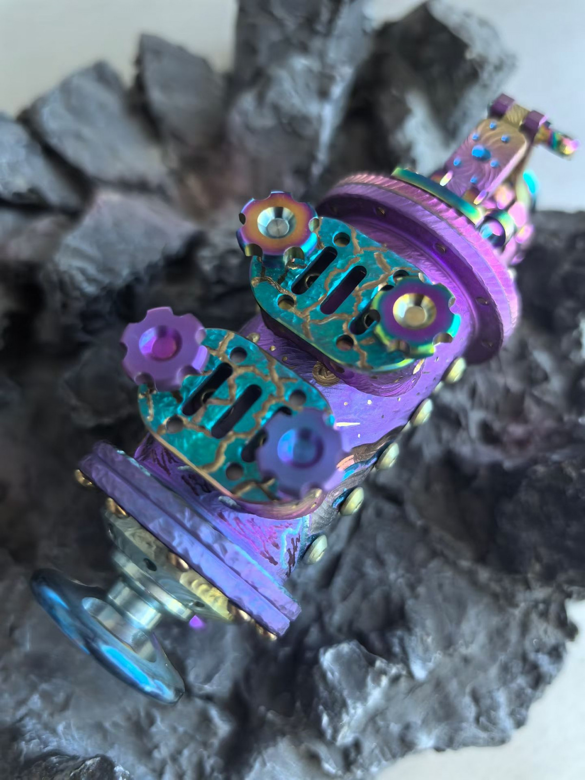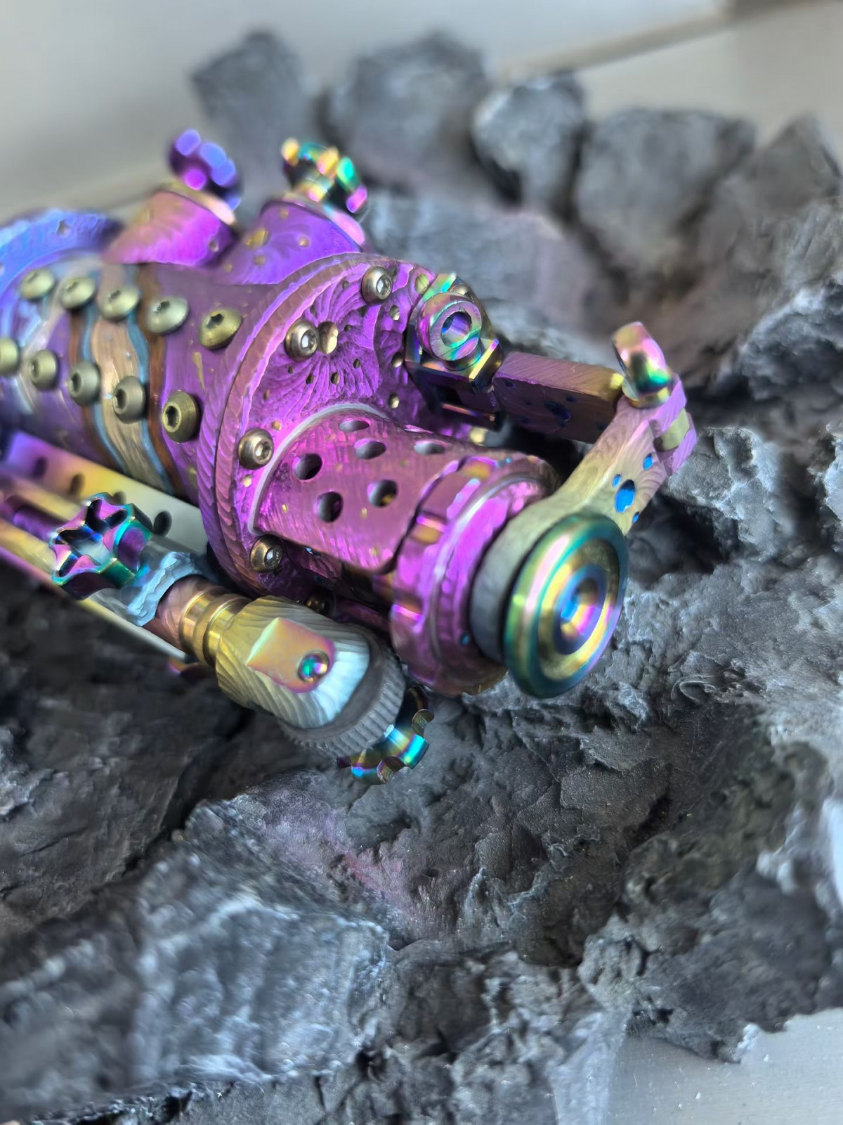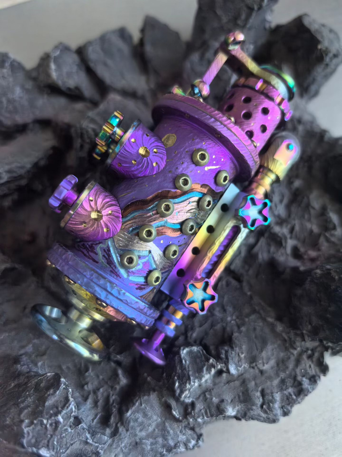 Titanium Alloy Steampunk Kerosene Lighter, Hand-Engraved with "Galaxy Mountains" & "Starfall," a Unique Item. A truly exceptional piece. #Lighter #Hand-Engraved #TitaniumAlloy