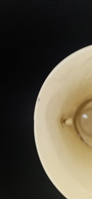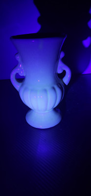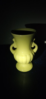 This vase was likely crafted in the 1940's. No markings at all. Excellent condition save for a barely noticeable chip on the rim (pictured). Like almost all uranium glazed pieces, it glows green under a 365nm UV light, NOT a 395. Not food safe.
